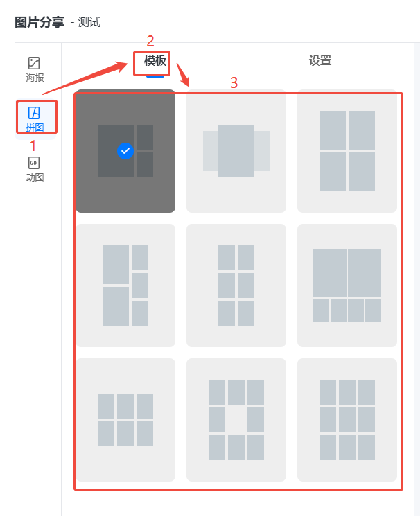 a)點擊【拼圖】,然后點擊【模板】,選擇一個海報模板。