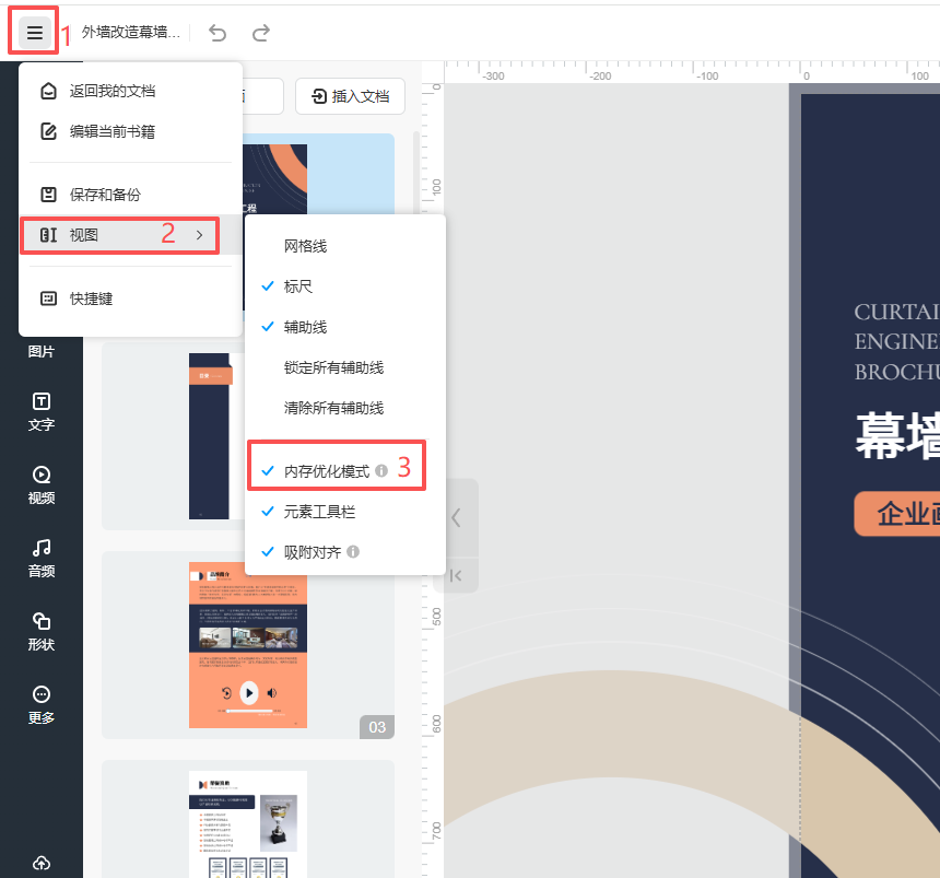 開(kāi)啟內(nèi)存優(yōu)化模式,編輯器會(huì)調(diào)整部分菜單區(qū)域的顯示特效,降低內(nèi)存開(kāi)銷。