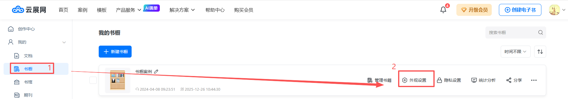 點擊【書櫥】,找到對應書櫥,點擊【外觀設置】,進入編輯界面。