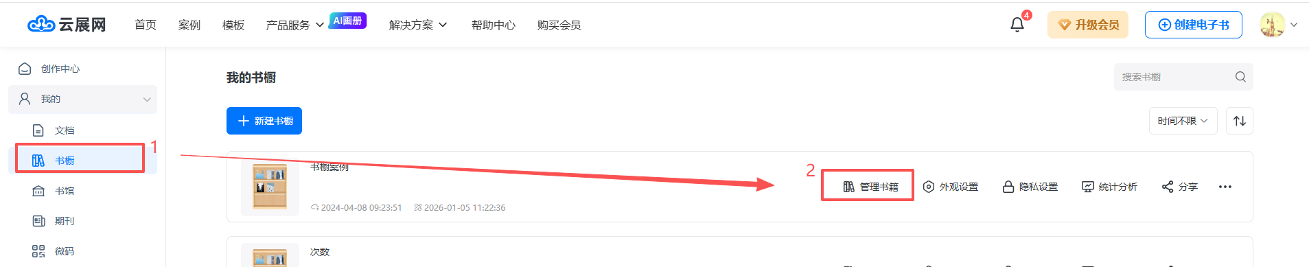 (1)點擊【書櫥】找到對應書櫥,點擊【管理書櫥】,進入管理書櫥界面。