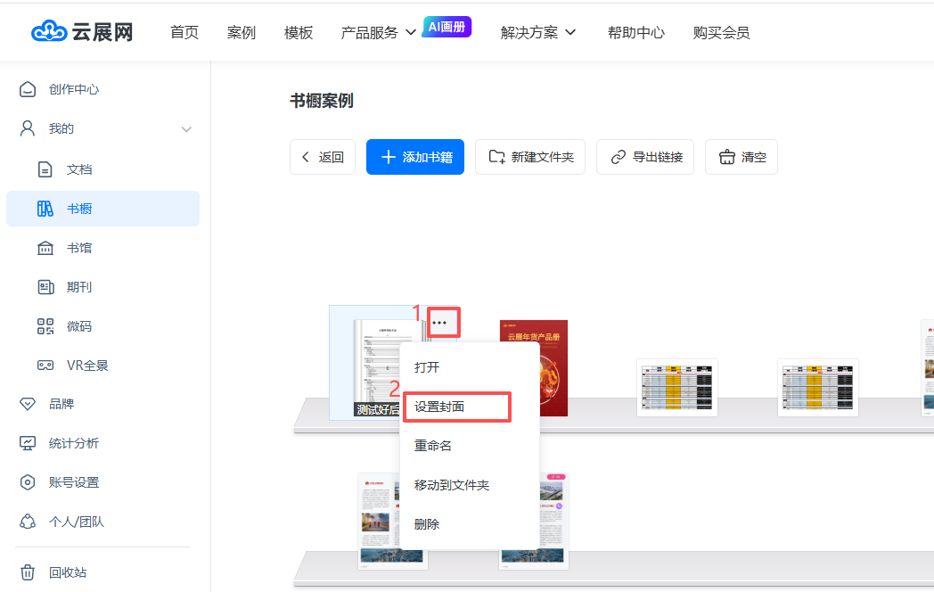 書櫥里的文件夾可以設置封面,使其看起來更美觀,書櫥文件夾封面有三種類型,分別是:顯示第一本書、顯示前三本書、自定義封面。