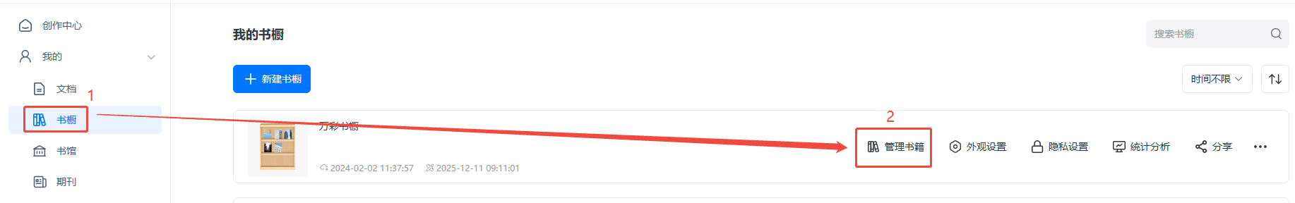 點擊【書櫥】,然后點擊【管理書櫥】,進入管理書櫥界面。