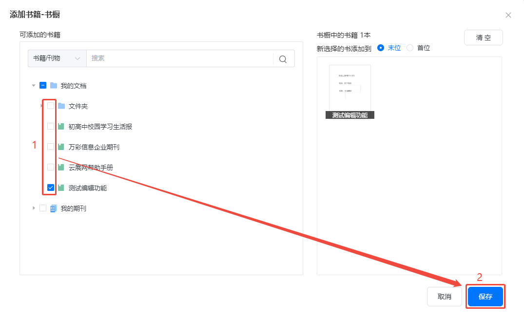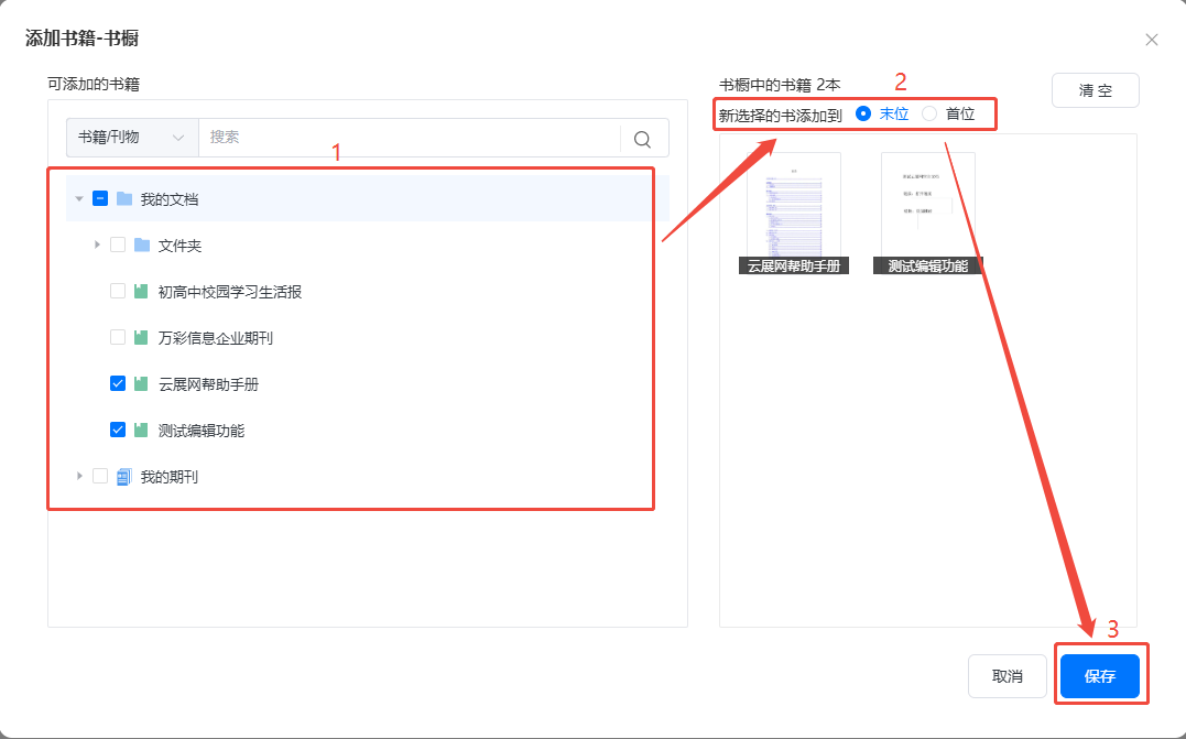 b)點(diǎn)擊【添加書籍】,勾選需要添加的書籍,點(diǎn)擊保存即可。
